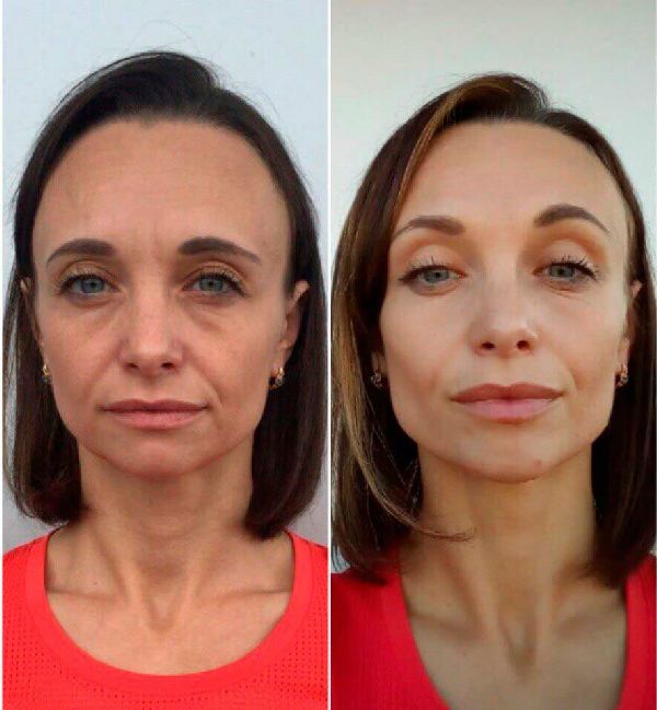 Catalina, używałam jej przez miesiąc, inne osoby z grupy używały jej dłużej. Ale pierwsze rezultaty zauważyłam już po siódmym dniu. Oto moje zdjęcia. Możesz zobaczyć, że wyglądam znacznie młodziej. Zmarszczki wokół oczu zniknęły, a fałdy prawie się nie pojawiają.